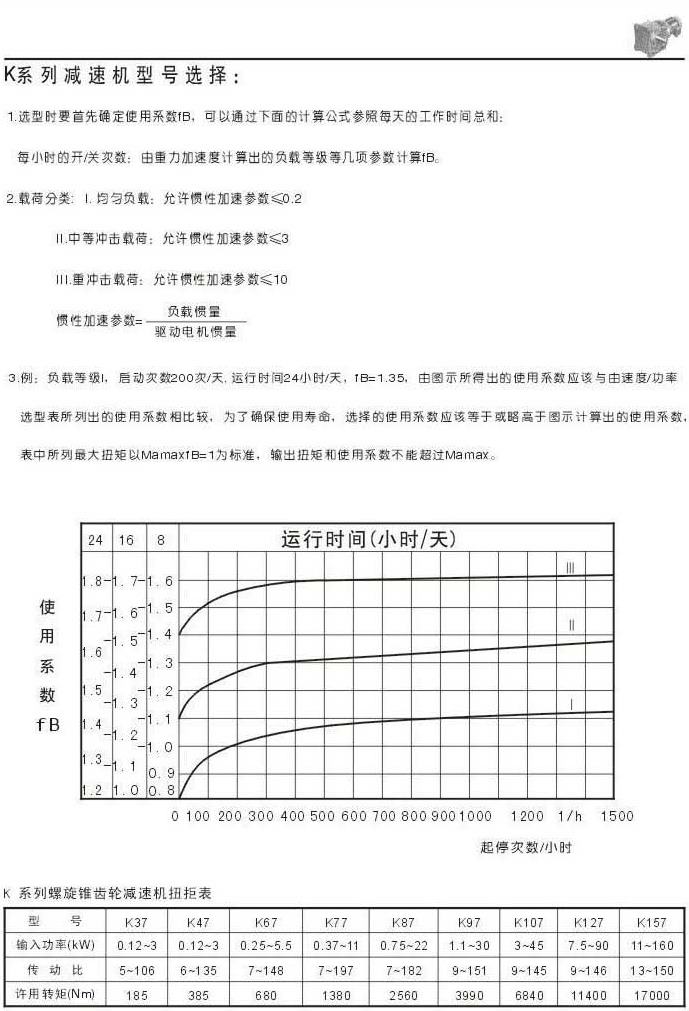 型號選擇扭矩表