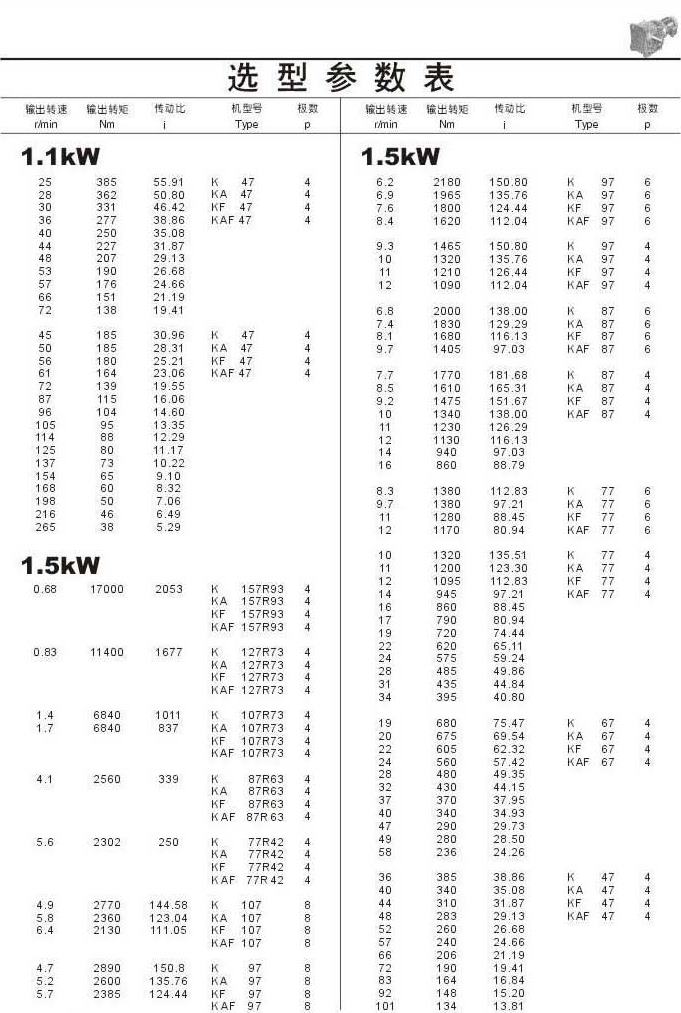 選型參數表1.1kW(續)和1.5kW