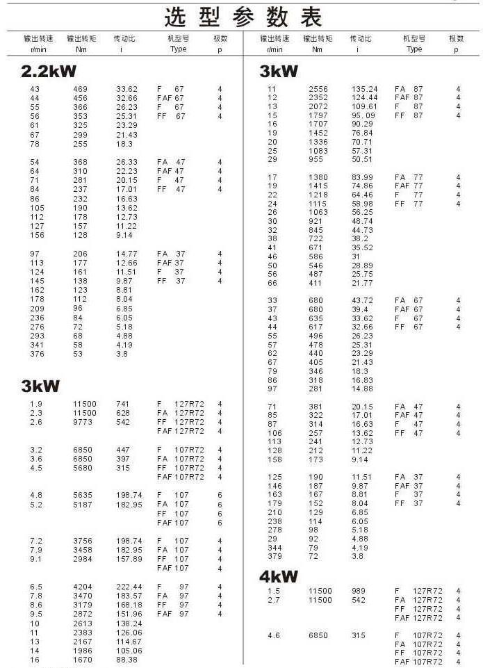 選型參數表2.2kW(續)3kW,4kW
