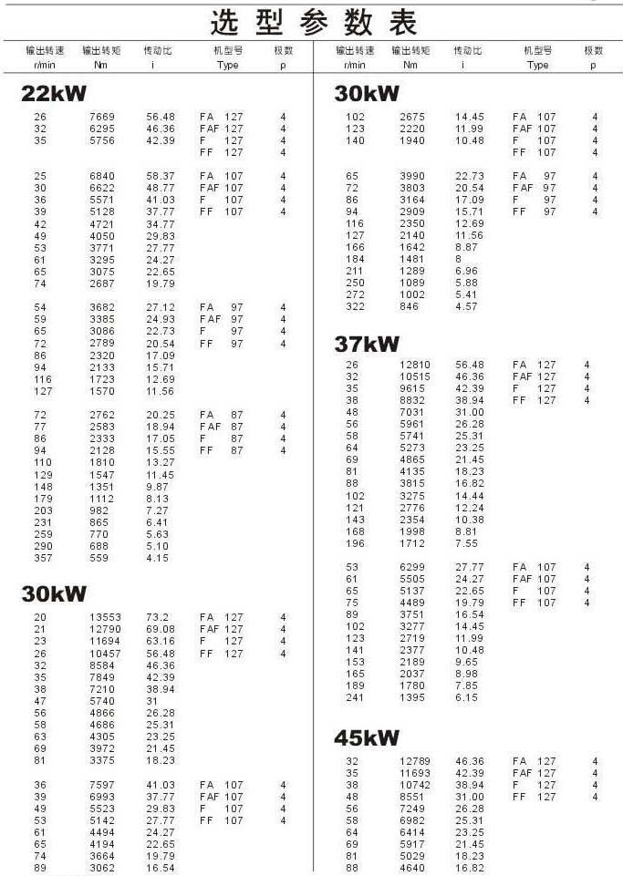 選型參數(shù)表22kW (續(xù)),30kW ,37kW ,45kW