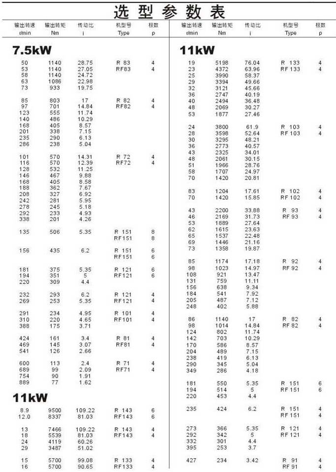 選型參數表7.5kW(續),11kW
